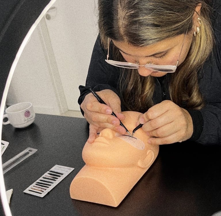 Nada de “técnicas descartáveis” ensinadas em cursos genéricos. No meu programa, você aprende desde o manuseio da pinça até o atendimento humanizado, passando por postura profissional, biossegurança e marketing digital. As aulas práticas são divididas em módulos pequenos, para não sobrecarregar seu aprendizado, e cada turma tem no máximo oito alunas, garantindo mentoria individualizada. Ao final, você faz atendimentos em modelos reais, com feedback ao vivo para corrigir detalhes e ganhar confiança